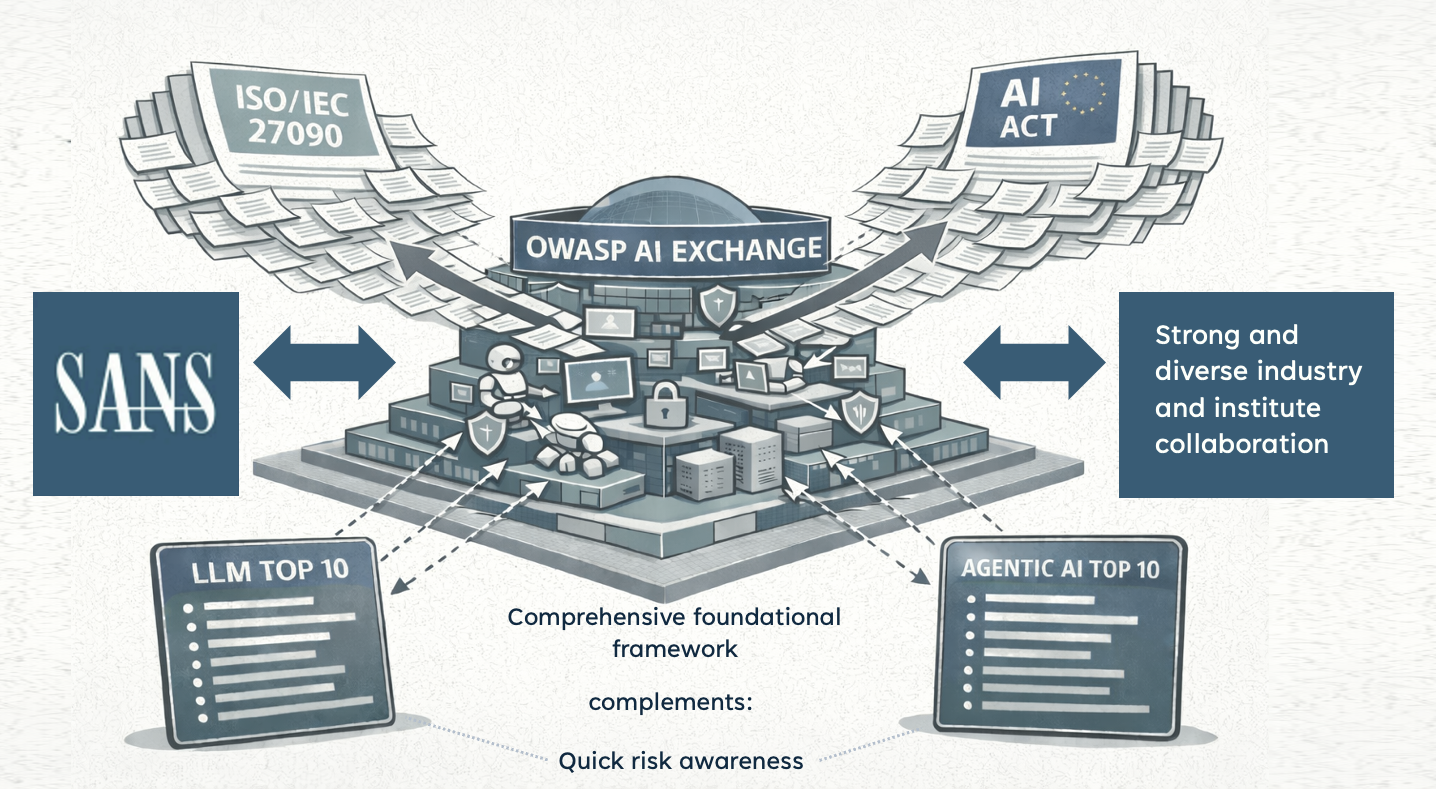 The OWASP AI Exchange(this work) is the go-to single resource for AI security & privacy - over 300 pages of practical advice and references on protecting AI, and data-centric systems from threats - where AI consists of Analytical AI, Discriminative AI, Generative AI and heuristic systems. This content serves as a key bookmark for practitioners, and is contributed actively and substantially to international standards such as ISO/IEC and the AI Act through official standard partnerships.